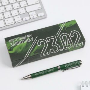 Подарочная ручка в футляре кожзам "23.02", металл, синяя паста, 1.0 мм