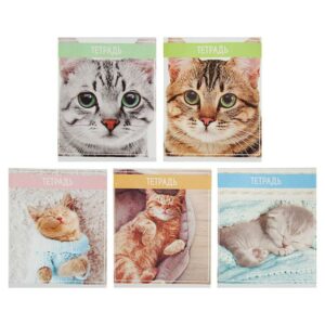 ПОДАРОК Тетрадь 36л, в клетку "Кошки", белизна 75% (серые листы), МИКС