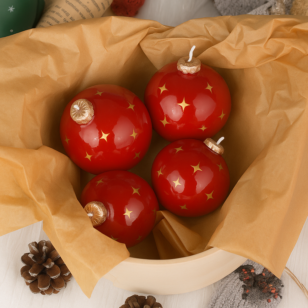 Аромасвеча "Ёлочный шар со звездами"-7см-Красный
