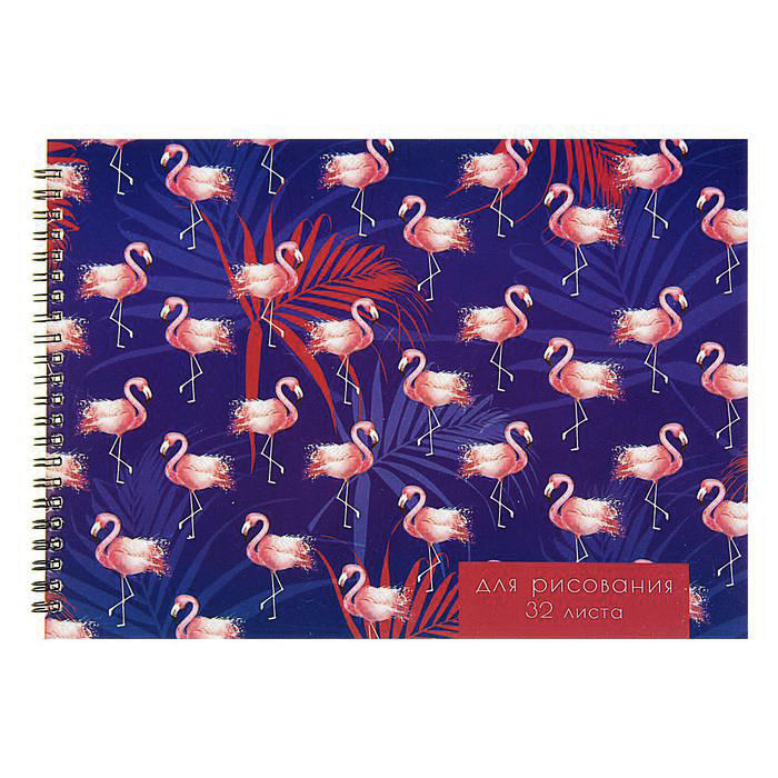 Альбом для рисования А4, 32 листа на гребне Calligrata «Фламинго», обложка мелованный картон, блок 100 г/м3