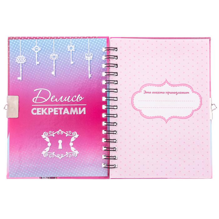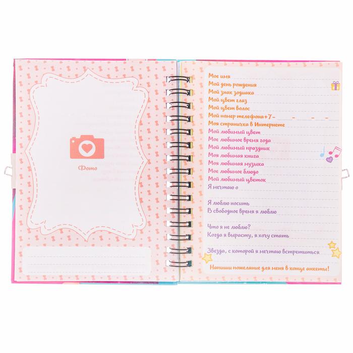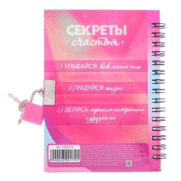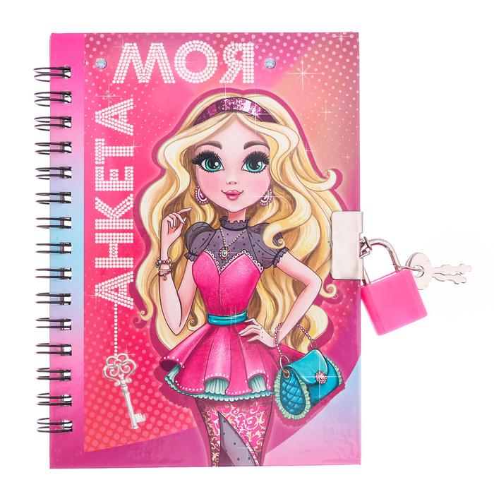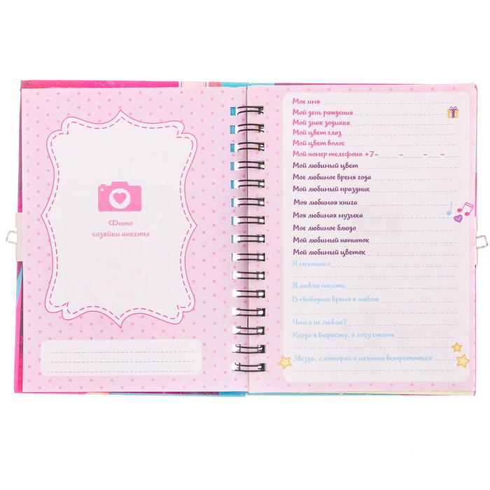 Анкета для девочек на замочке “Моя анкета”, А6, твёрдая обложка, 80 страниц