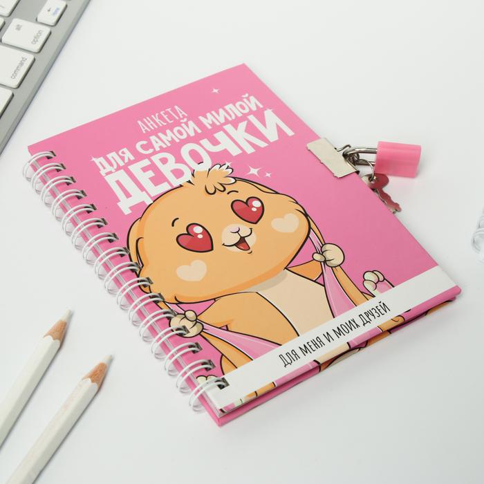 Анкета в твердой обложке на замочке “Для самой милой девочки”, А6 40 л