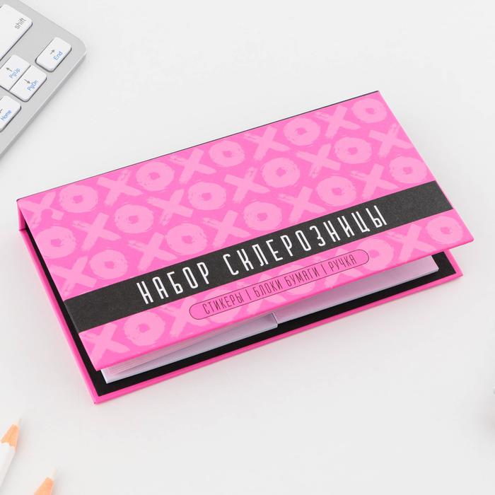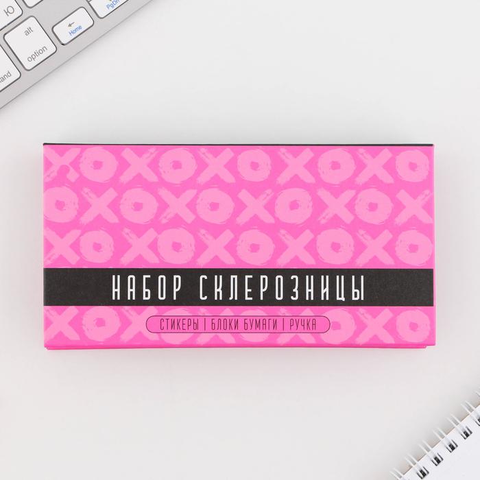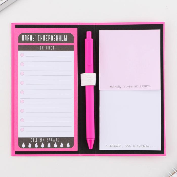Блок бумаг для записей 30 листов, стикеры, ручка шариковая синяя 0.7 мм «Набор склерозницы» .