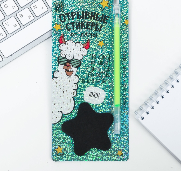 Блок с липким краем “Стикеры от ламы” , + ручка, чёрные листы