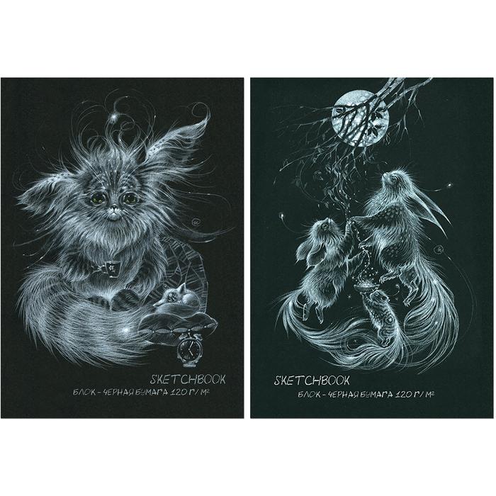 Блокнот А5, 20 листов Sketchbook black, блок чёрная бумага 120 г/м?, МИКС