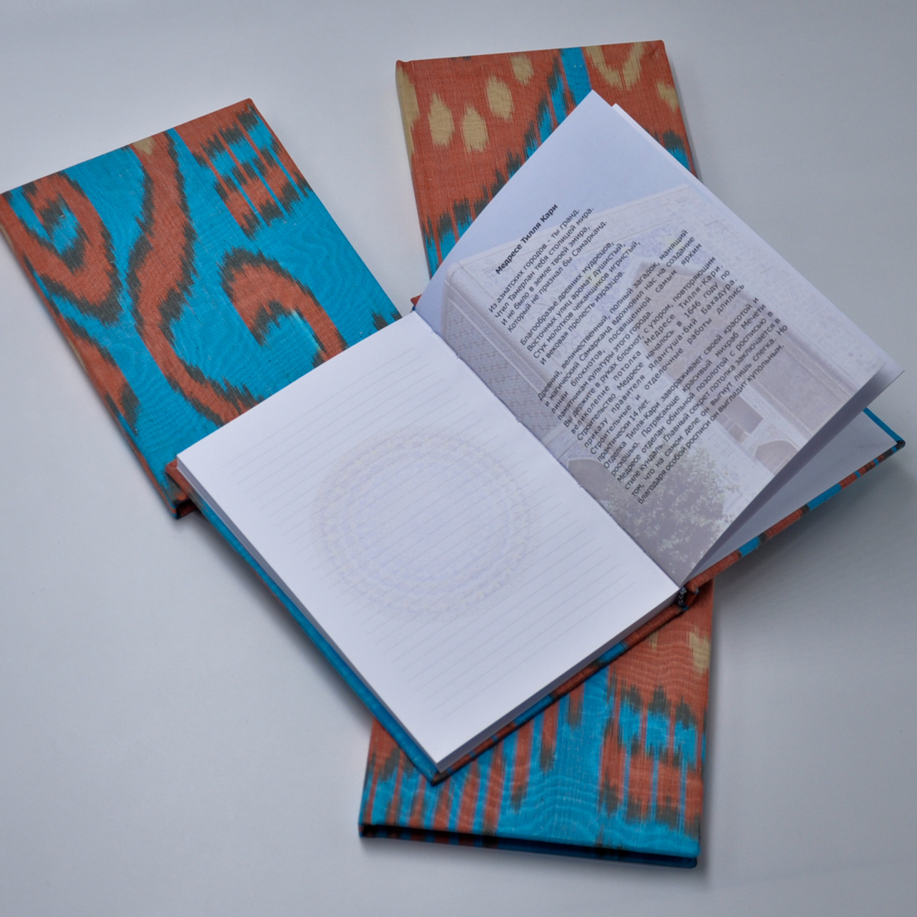 Коллекция национальных блокнотов Create, посвящённая городу Самарканд – это сочетание качества и национального колорита, приправленных интересными историческими фактами. Для дизайна листов был выбран узор одного из самых известных архитектурных памятников – медресе Тилла Кари. В конце каждого блокнота вы найдёте описание, подробно рассказывающее историю уникального сооружения на 2 языках (русском и английском). Обложка выполнена из яркого шелкового адраса. Блокнот полностью собран вручную, что придаёт ему еще большую ценность и гарантирует отменное качество. Размер: А5. Количество листов: 80 листов. Плотность бумаги: 100 гр/м3