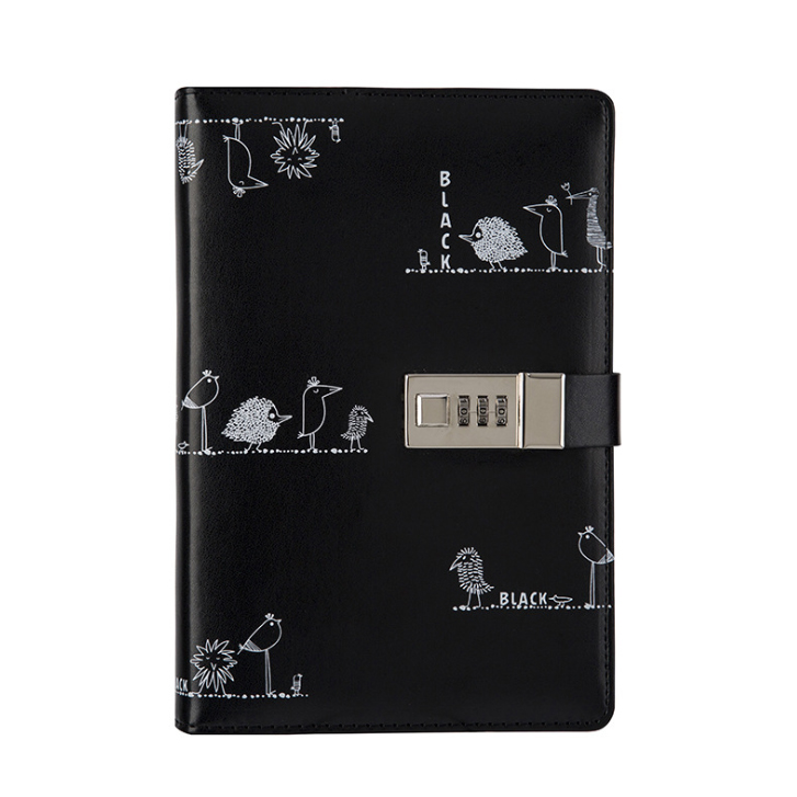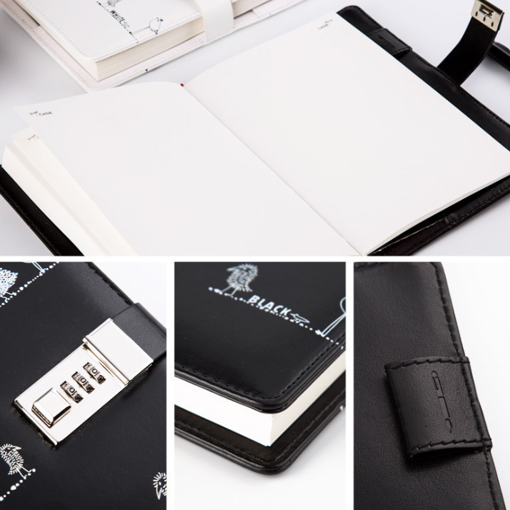 Этот блокнот просто создан для хранения своих тайн! Идеально подойдёт для ведения личного дневника или записей очень важных дел.rnРемешок и замочек с кодом не позволят чужим рукам добраться до ваших секретов.rnА милые мультяшные птички будут поднимать Вам настроение каждый раз, когда вы возьмете его в руки.rnРасцветки: черный, белый.rnТвердый переплет.rn