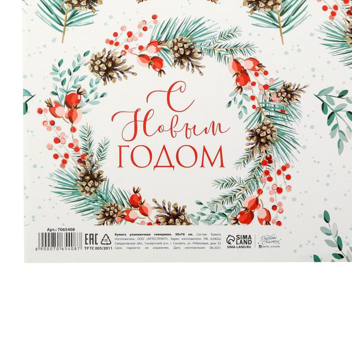 Бумага упаковочная глянцевая «Венки», 50 х 70 см