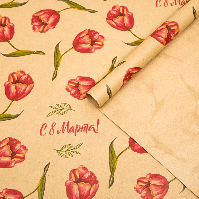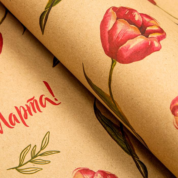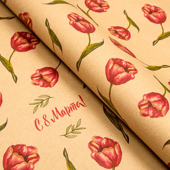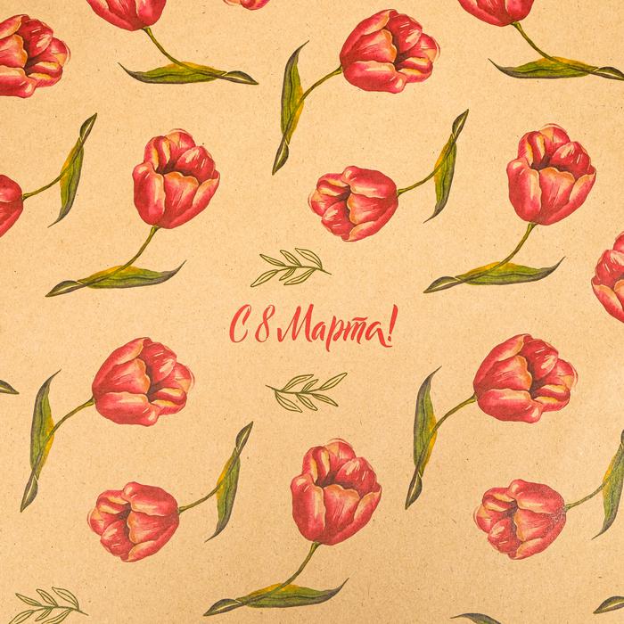 Бумага упаковочная крафт “Нежные тюльпаны”, 70 х 100 см