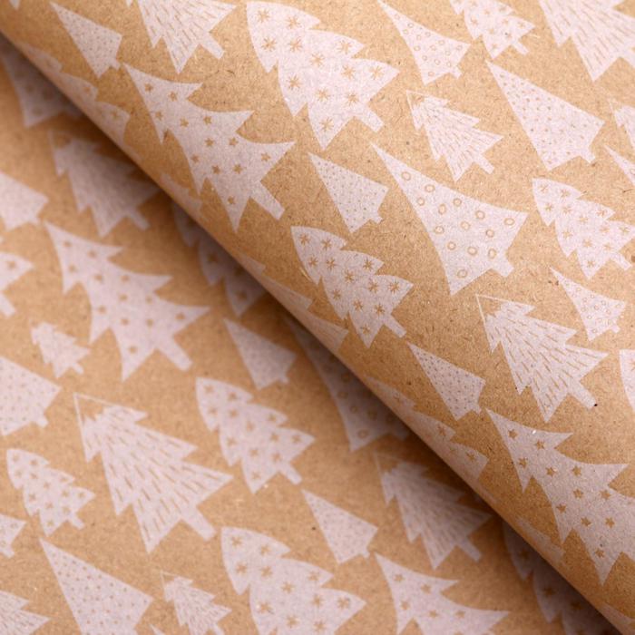 Бумага упаковочная, крафт, “Снежные елочки”, 50 х 70 см