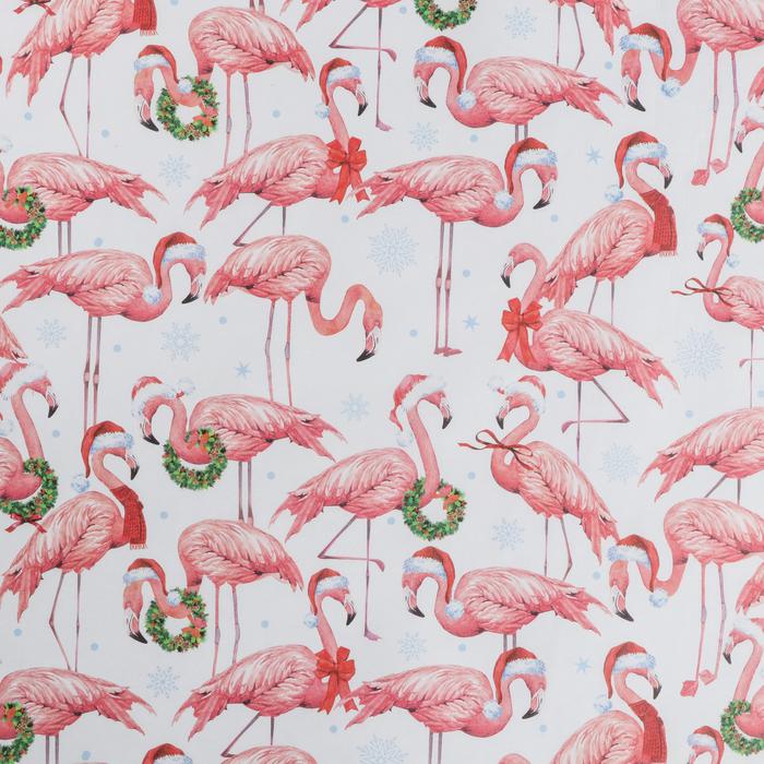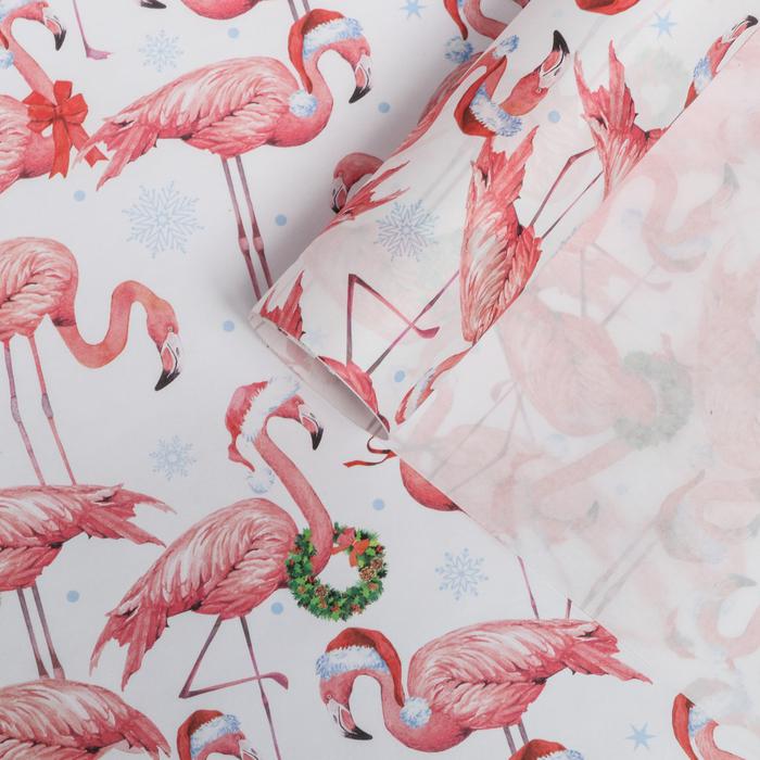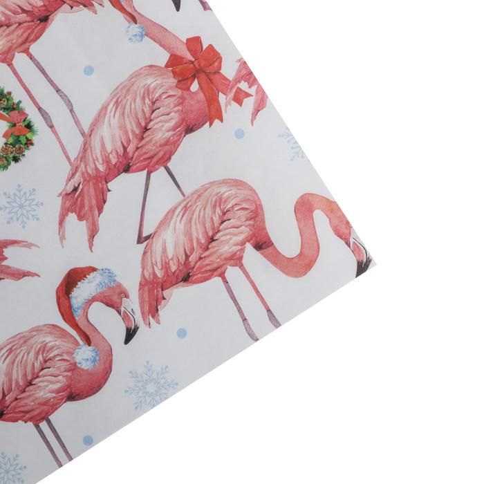 Бумага упаковочная крафтовая «Фламинго в колпаках», 50 x 70 см