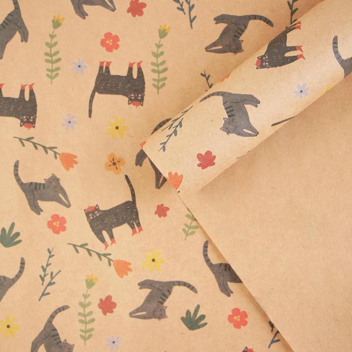 Бумага упаковочная крафтовая «Котики», 50 х 70 см