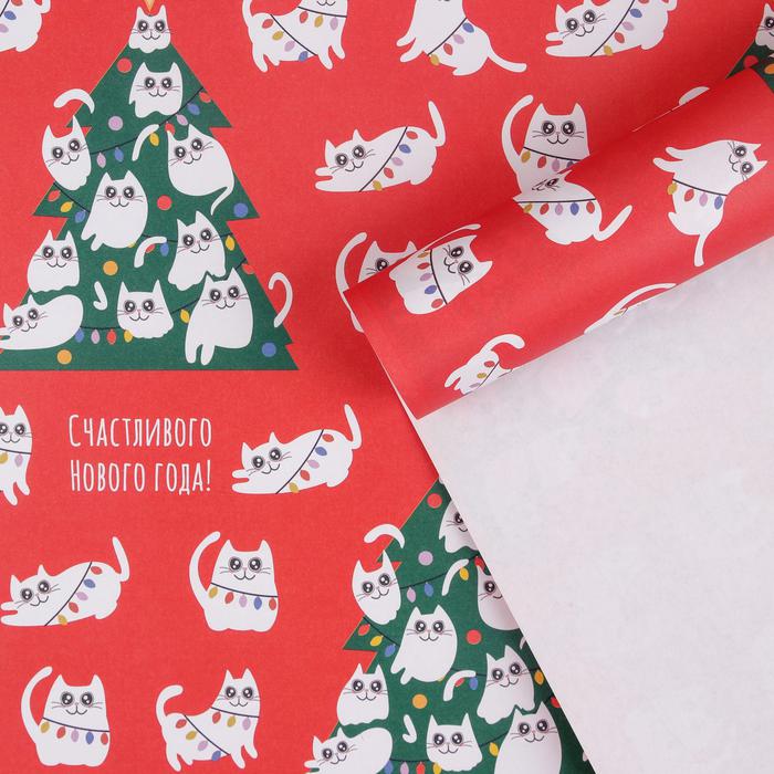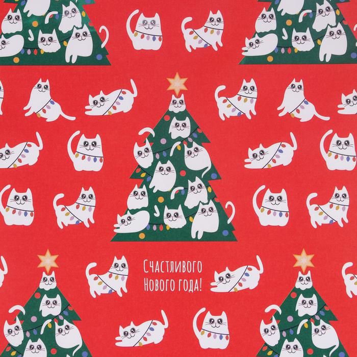 Бумага упаковочная крафтовая «Новогодние котики», 70 х 100 см