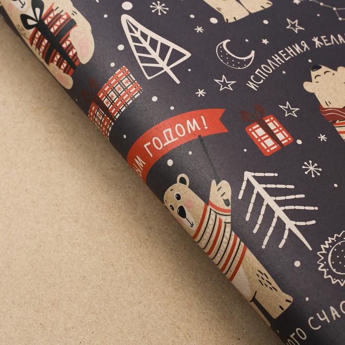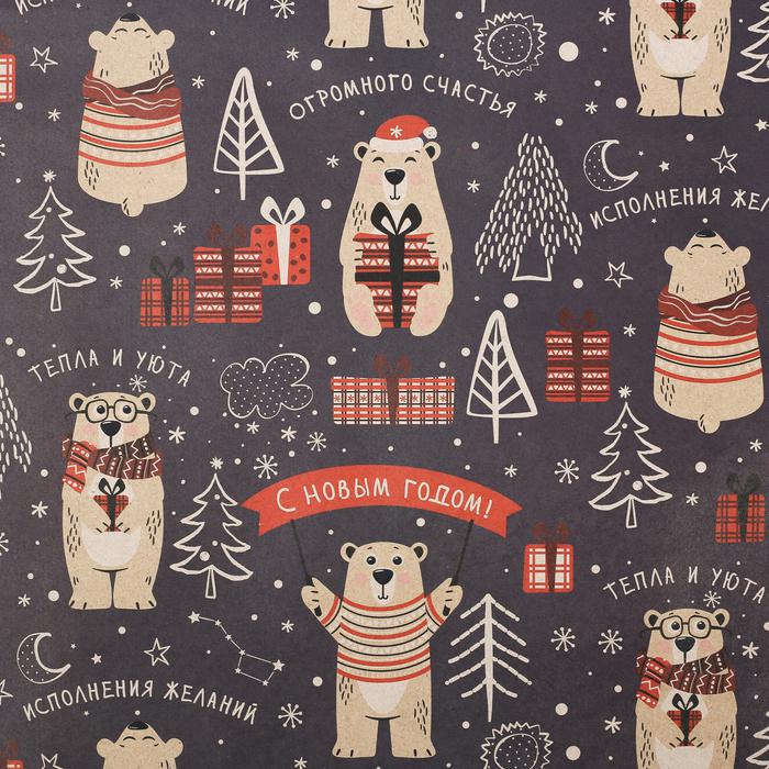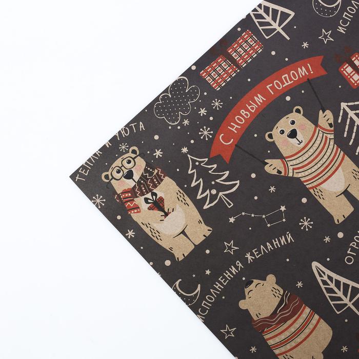 Бумага упаковочная крафтовая «Полярный мишка», 50 x 70 см