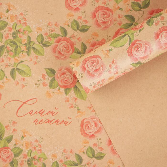 Бумага упаковочная крафтовая «Самой нежной», 50 х 70 см
