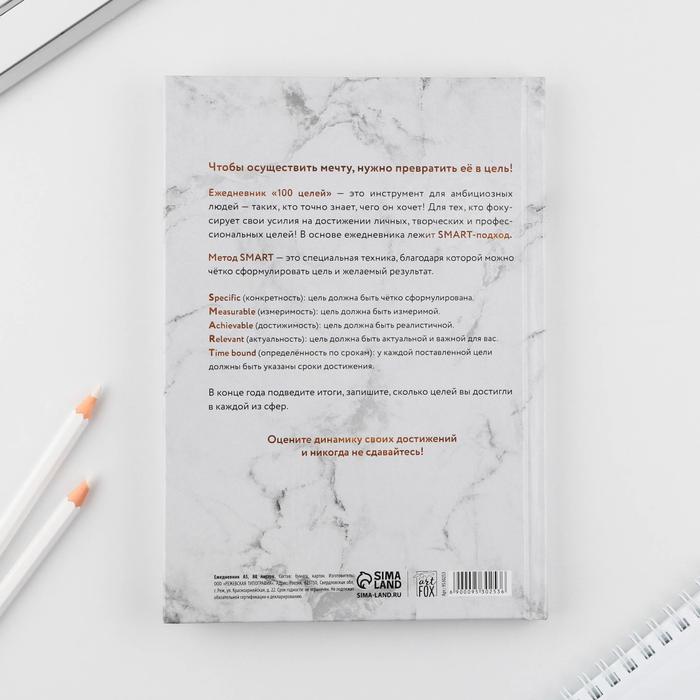 Ежедневник 100 целей «Мрамор»-А5, 80л