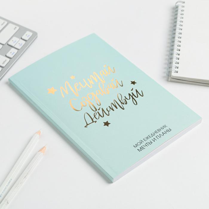 Ежедневник-планинг в тонкой обложке с тиснением “Мечтай.Создавай.Действуй. МЯТНЫЙ” А5, 80 листов