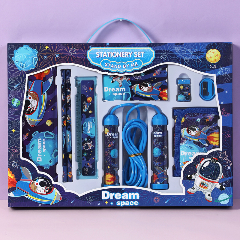 Канцелярский набор “Space”-9 предметов (пенал,2 карандаша, точилка, ластик, линейка, альбом,кошелек, скакалка)