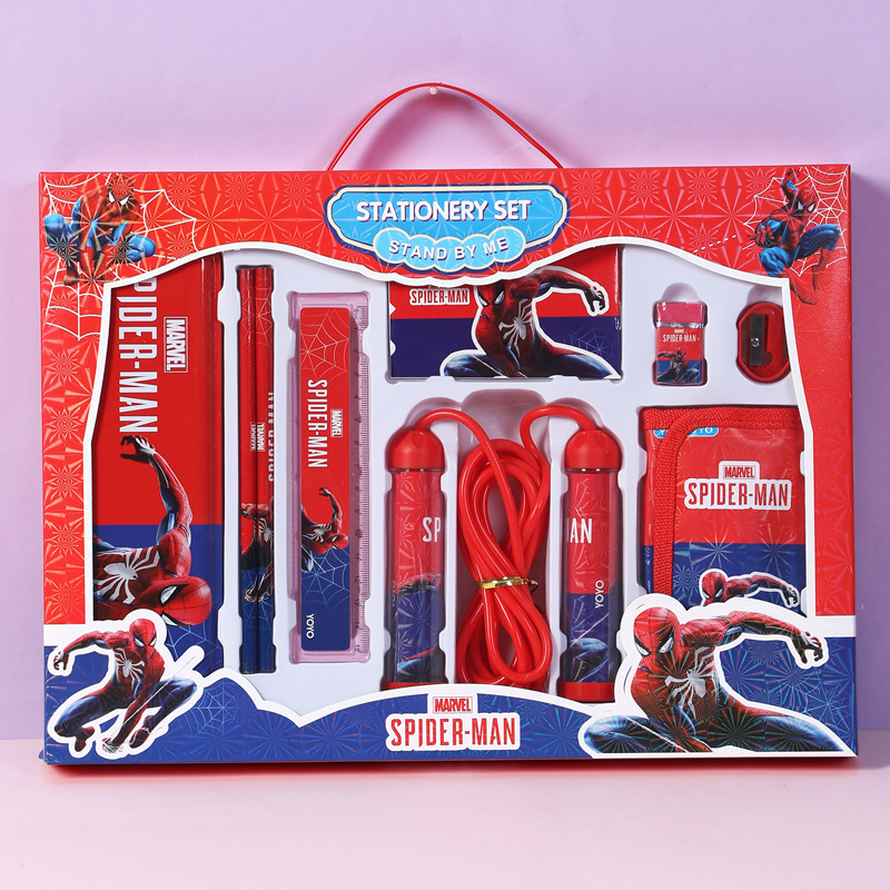 Канцелярский набор “Spiderman”-9 предметов (пенал,2 карандаша, точилка, ластик, линейка, альбом,кошелек, скакалка)