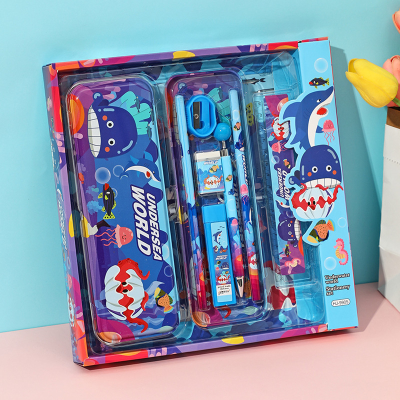 Канцелярский набор “Undersea world”-7 предметов (пенал, карандаши, линейка, ластик,точилка, механический карандаш, подставка)