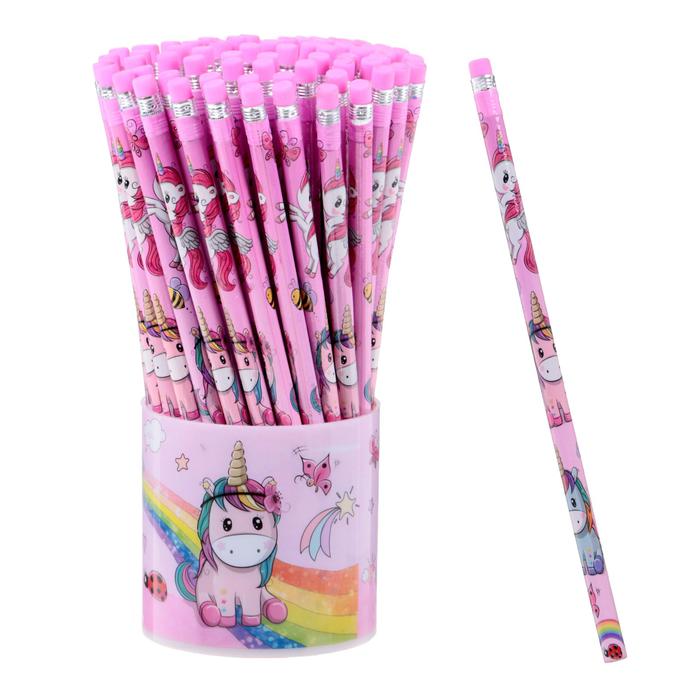 Карандаш чёрнографитный с ластиком “Единорог”, твёрдость НВ