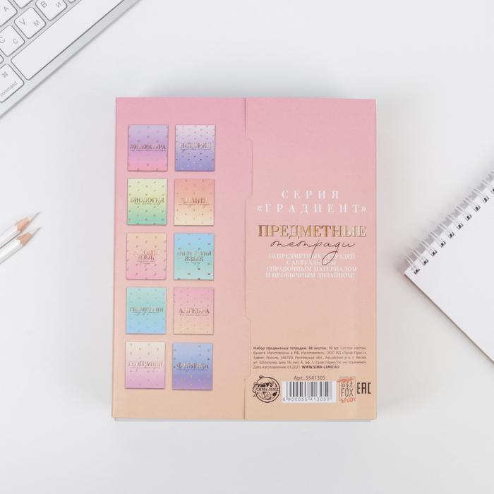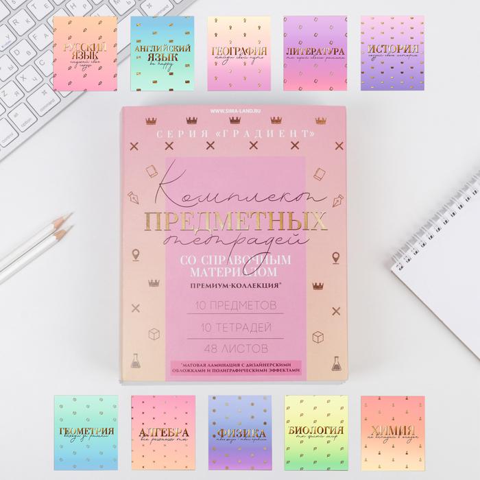 Комплект тетрадей с УФ лаком, 48 л, 10 предметов со справ. мат. в коробке «Градиент»
