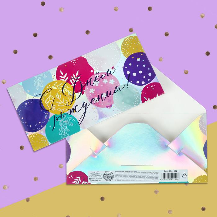 Конверт для денег «Шарики», голография, 16,5 х 8 см