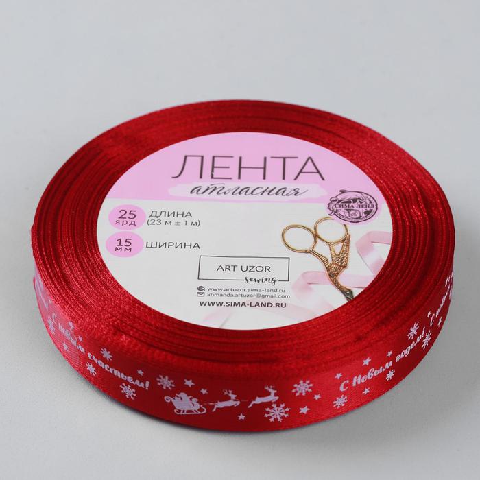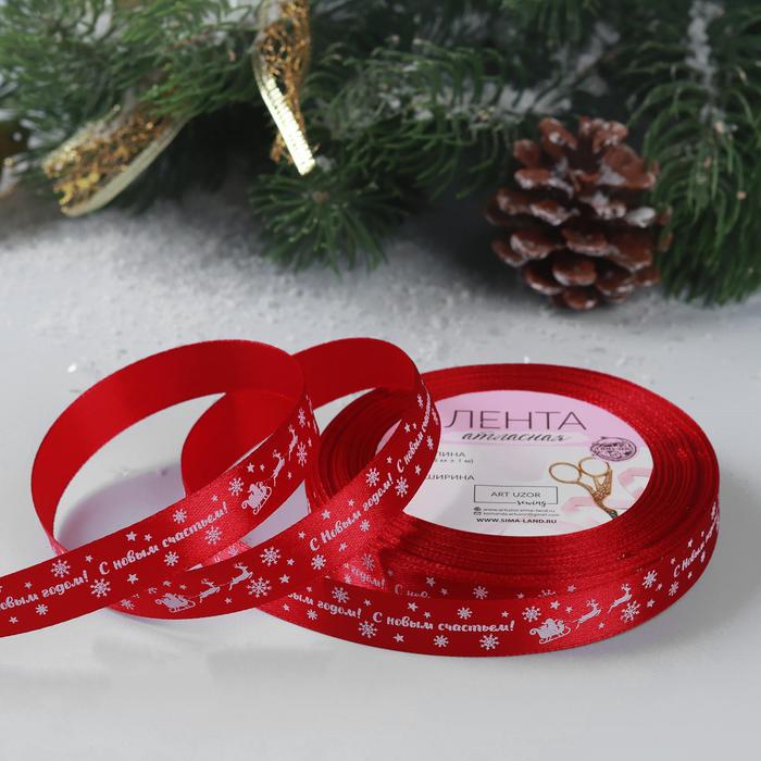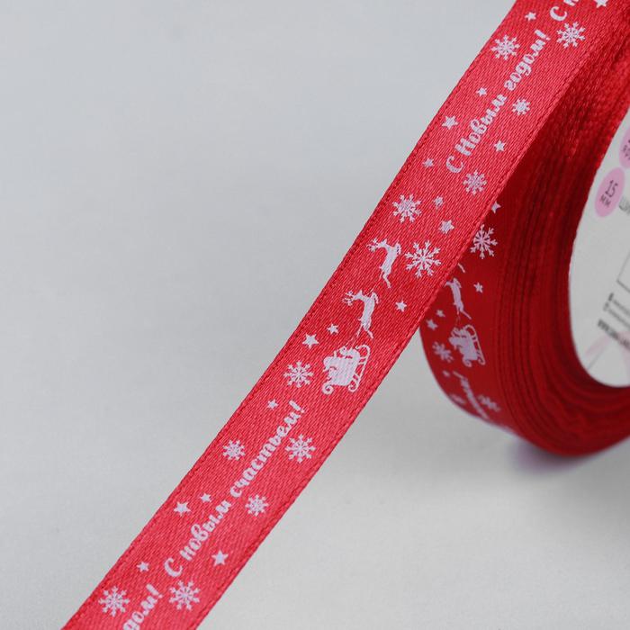 Лента атласная «С Новым годом», 15 мм, 23 м