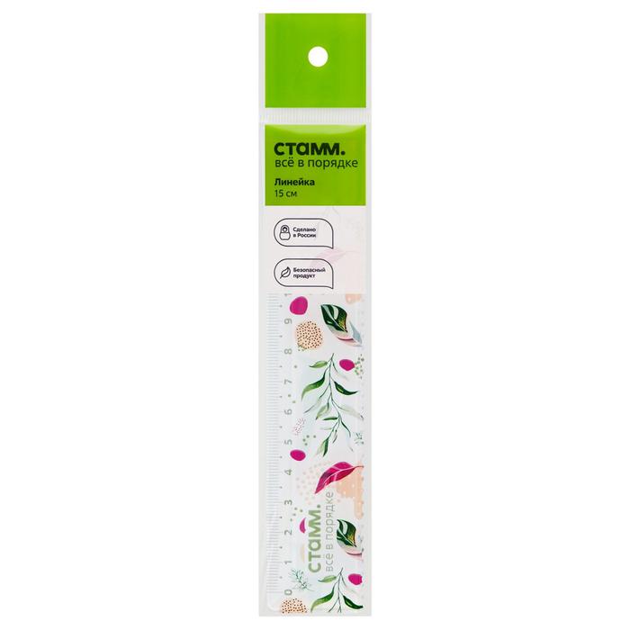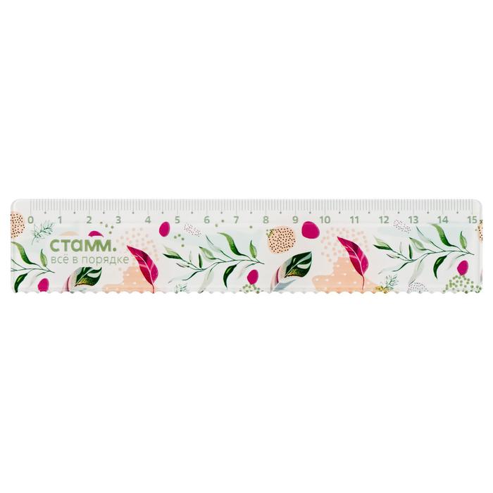 Линейка 15 см, Стамм “Листья”, пластиковая, с волнистым краем