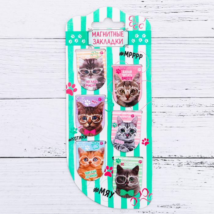 Магнитные закладки на подложке “Котики”, 6 шт.