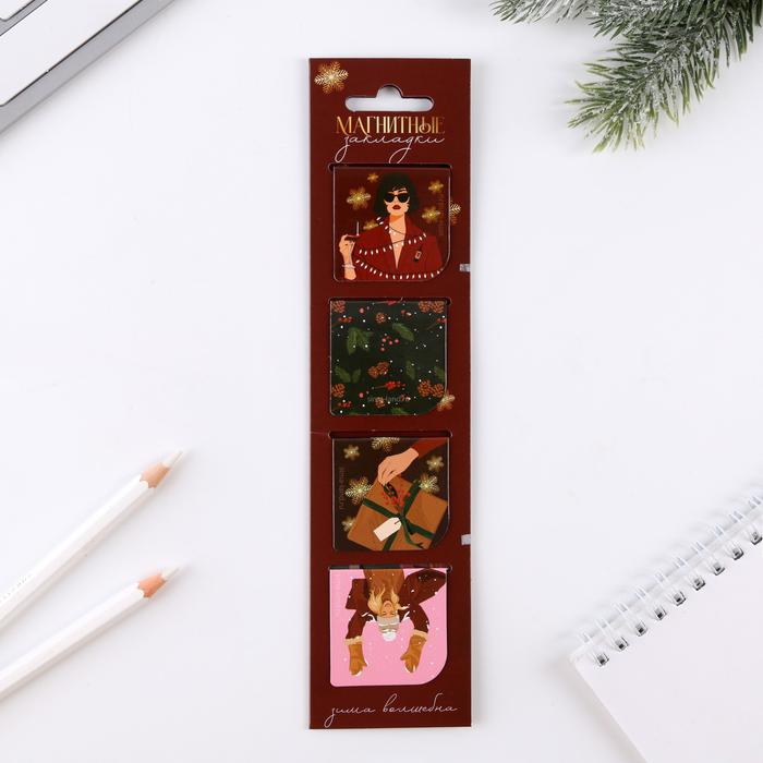 Магнитные закладки «Сияй в новом году», на открытке, 4 шт