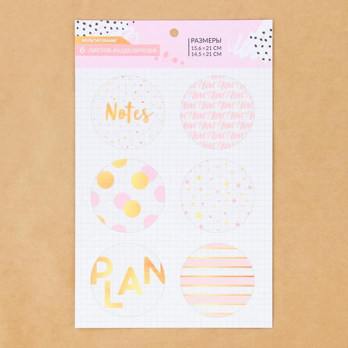 Набор ацетатных разделителей для планера «Розовые облака», 16 х 25 см, 6 листов
