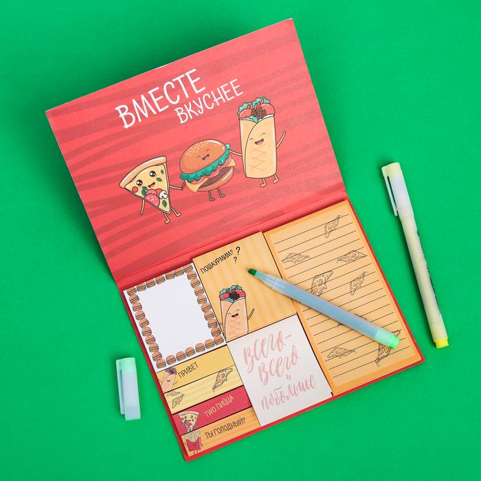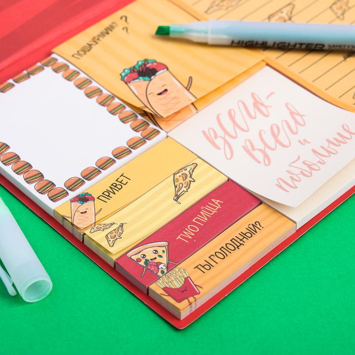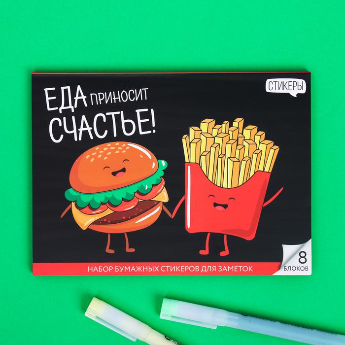 Набор блоков для записей с липким краем “Еда приносит счастье!”, 8 блоков