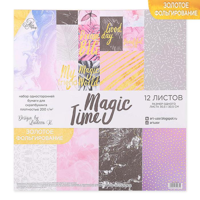 Набор бумаги для скрапбукинга с фольгированием Magic time, 12 листов