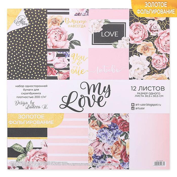 Набор бумаги для скрапбукинга с фольгированием My love, 12 листов