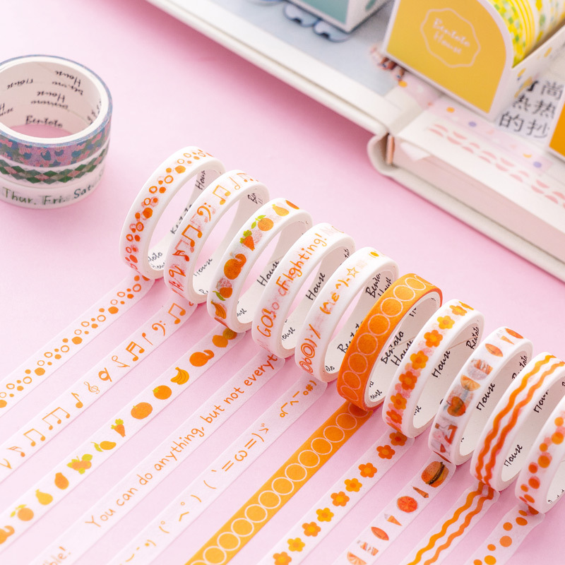 Набор декоративных скотчей-Bento House-10 шт-Оранжевый