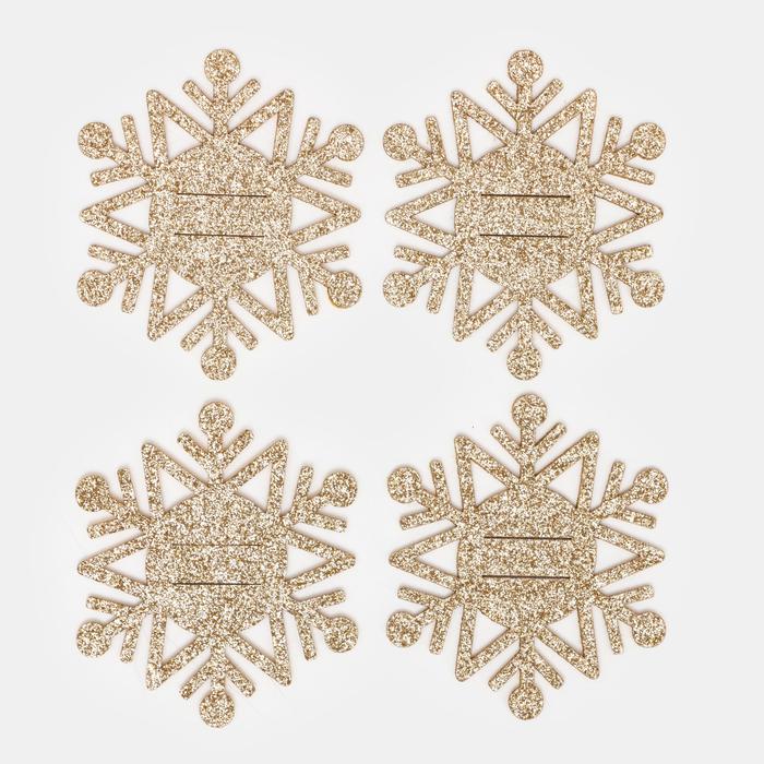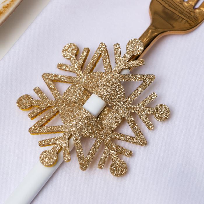 Набор для декора столовых предметов «Снежинка», 4 шт, цв. золото 6,5х7,5 см, 100% п/э, фетр 626098