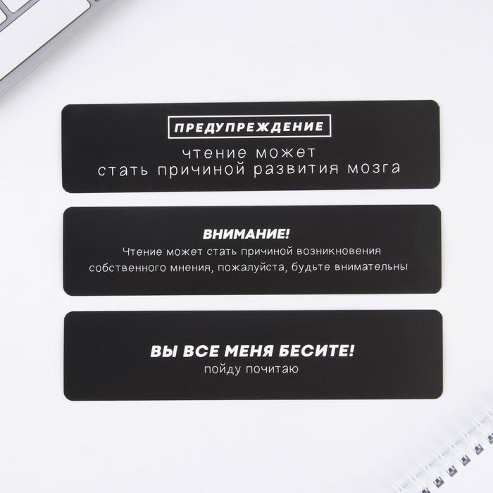Набор картонных закладок, 3 шт «Опасность чтения»
