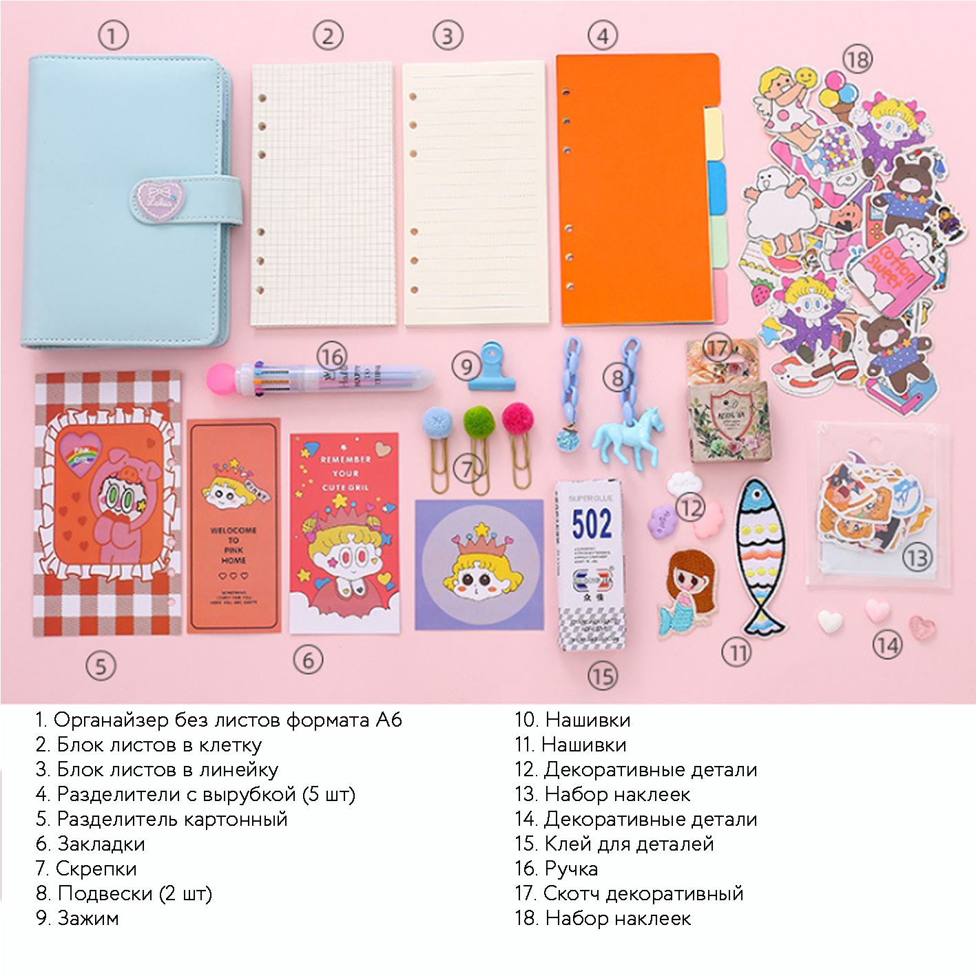 Набор Lolita органайзер, наклейки, брелок, ручка -18 предметов, Blue