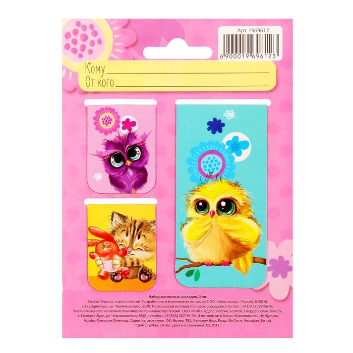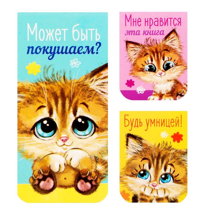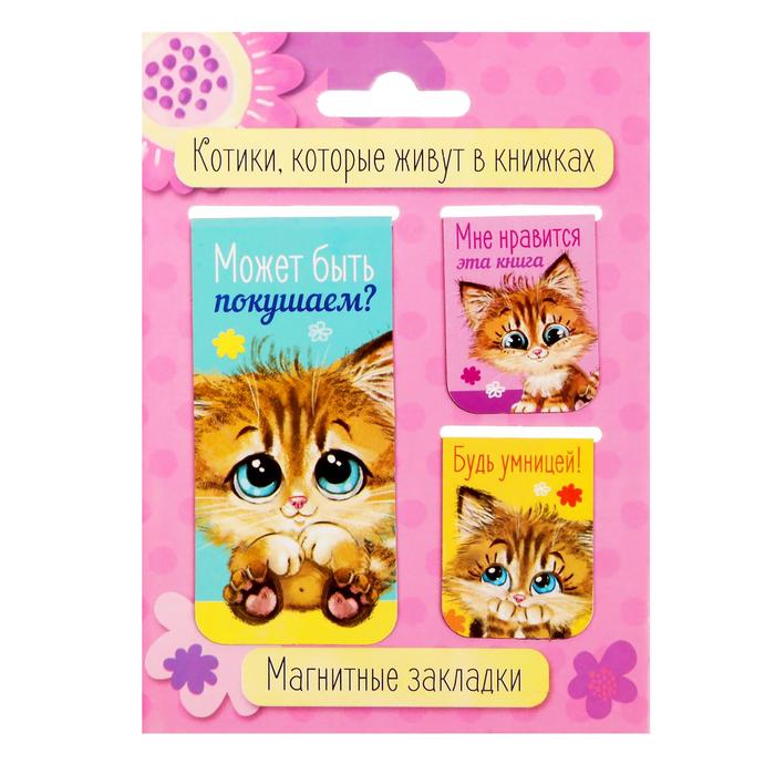 Набор магнитных закладок 3 штуки “Котики, которые живут в книжках