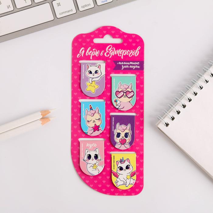 Набор магнитных закладок 6 шт на подложке “Я верю в единорогов