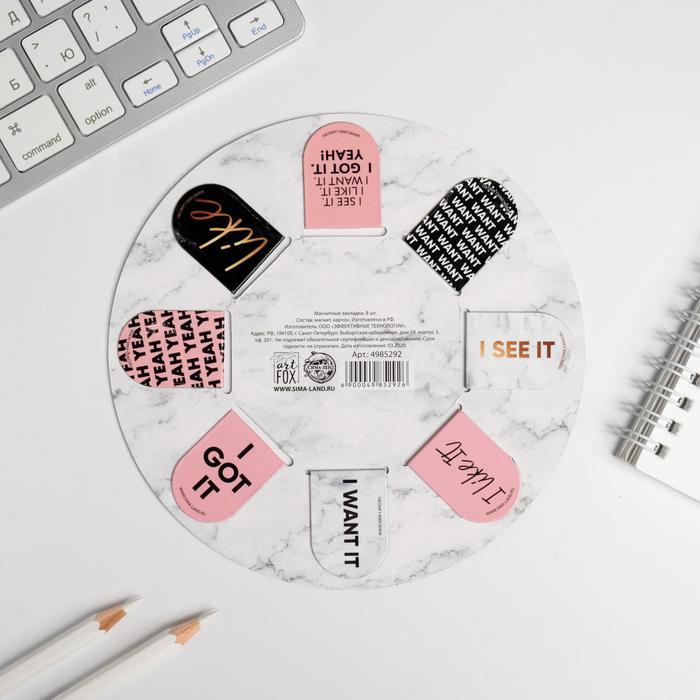 Набор магнитных закладок 8 шт на круглой подложке I LIKE IT
