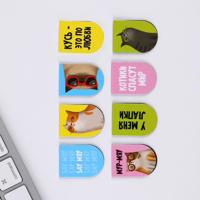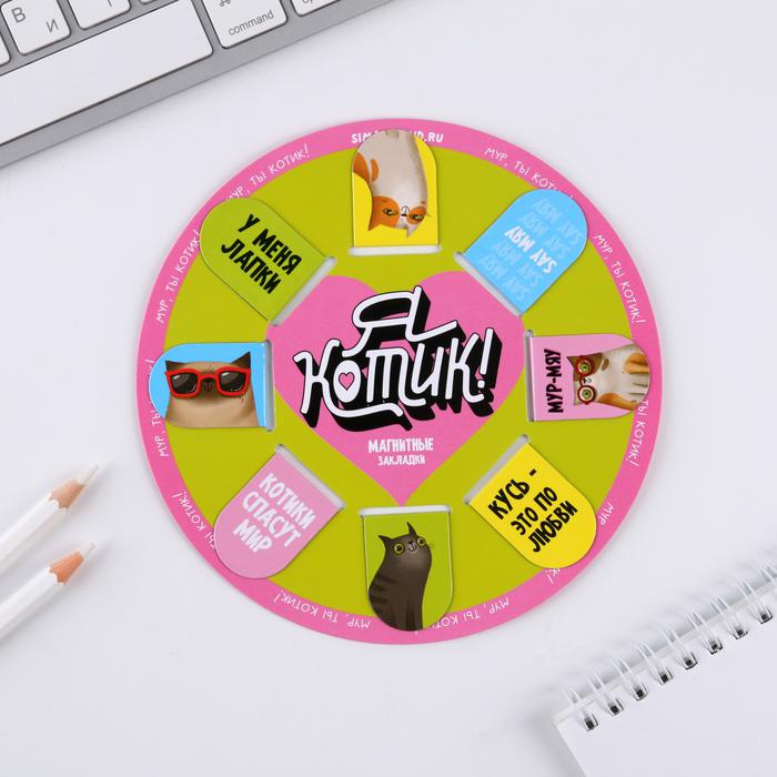 Набор магнитных закладок 8 шт на круглой подложке «Я котик»