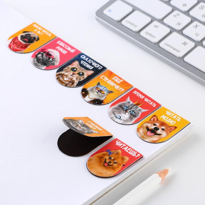 Набор магнитных закладок 8 шт на круглой подложке “Звери