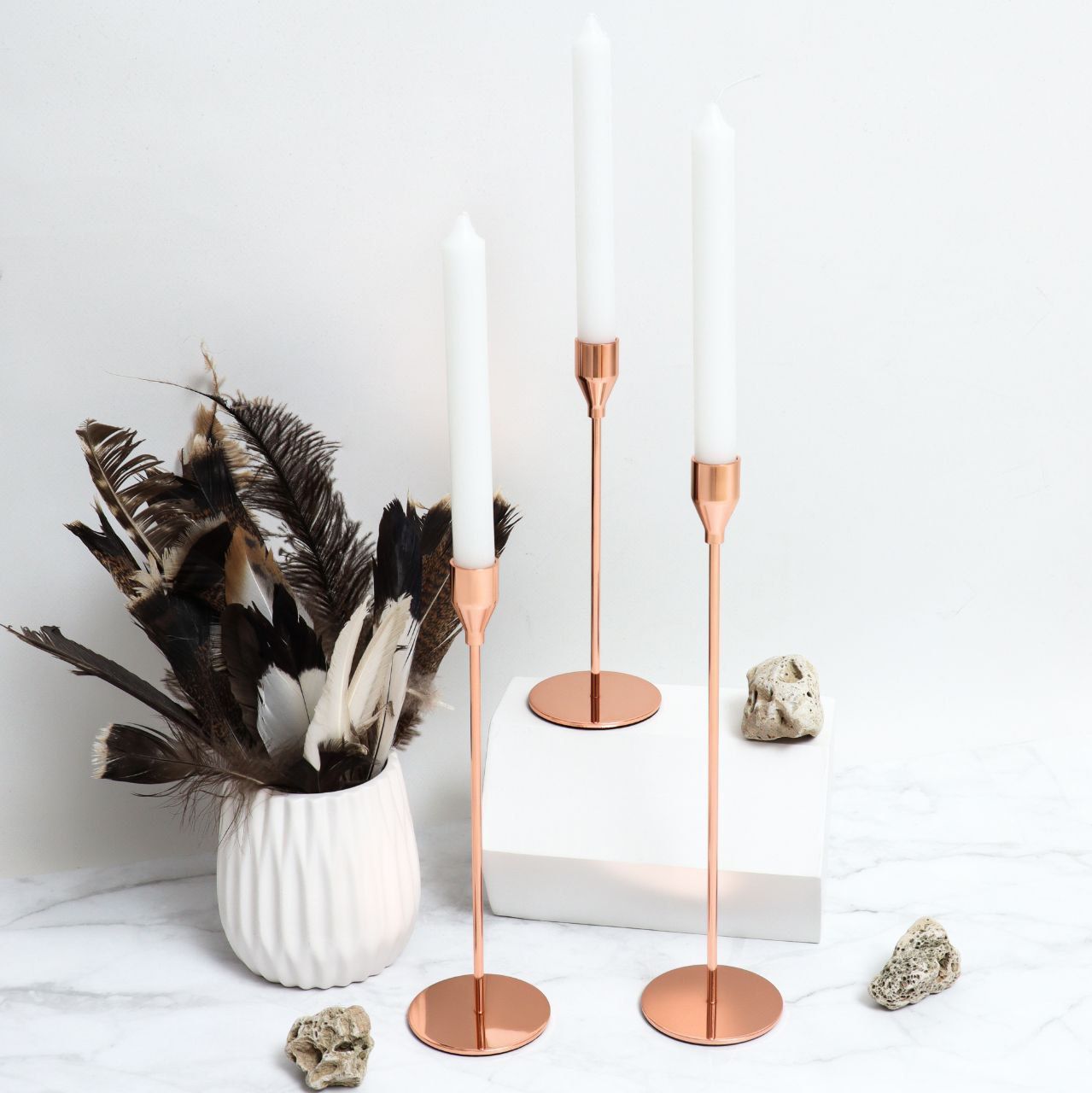 Набор подсвечников-3шт-23/28/34см-Розовое Золото