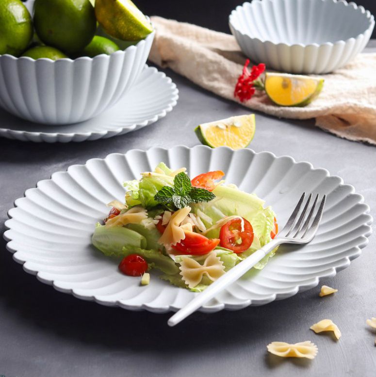 В наборе: Тарелка “Хризантема”-20,4 см – 4 шт Тарелка “Хризантема”-26,3 см – 4 шт Салатница “Хризантема”-16х7,5 см-1000 мл – 4 шт Салатница “Хризантема”-13,3х4,6 см-380 мл – 4 шт