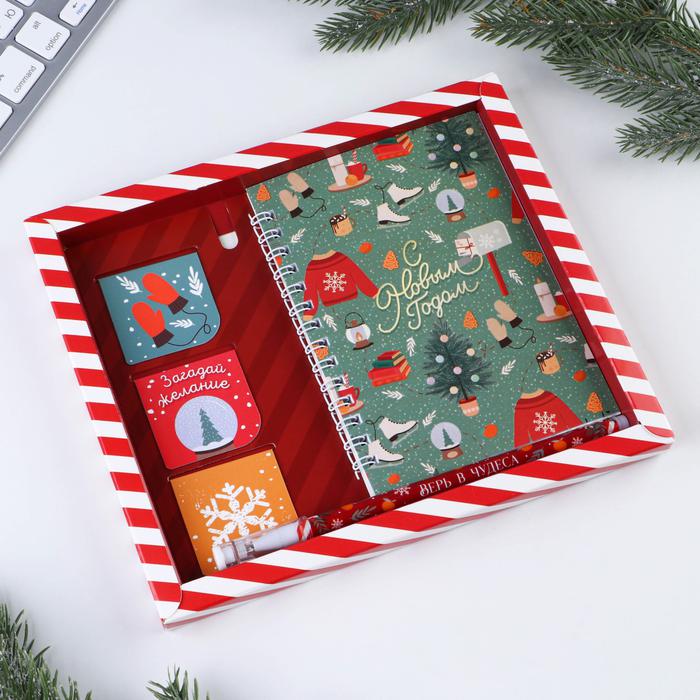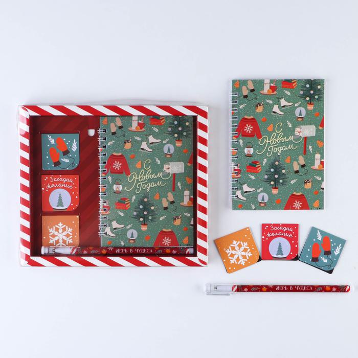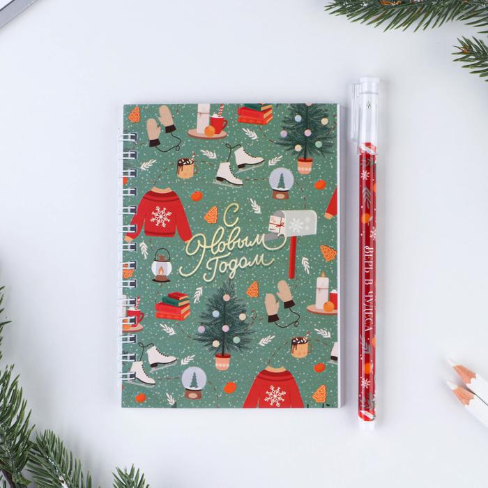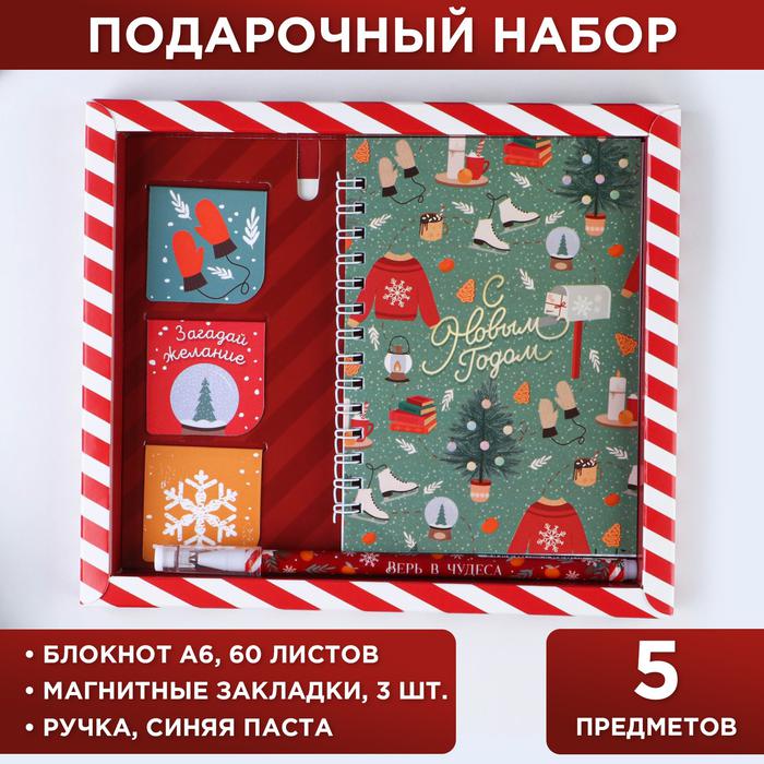 Набор «С Новым годом»: блокнот на спирали А6, 40 листов, магнитные закладки 3 шт (МИКС) и ручка пластик