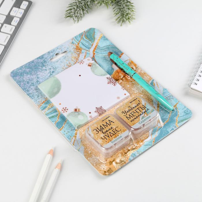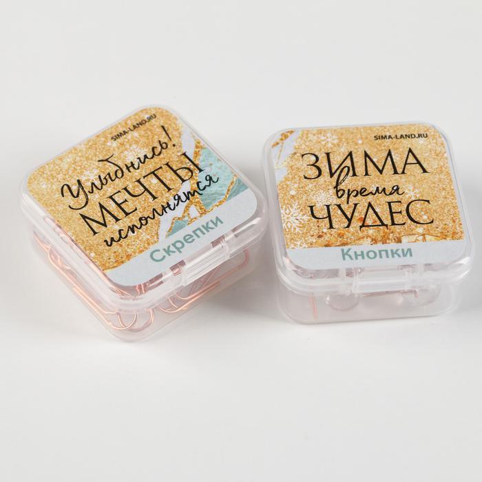 Набор «Сияй ярче этой зимой», 50 л, кнопки 20 шт, скрепки 20 шт, ручка металл