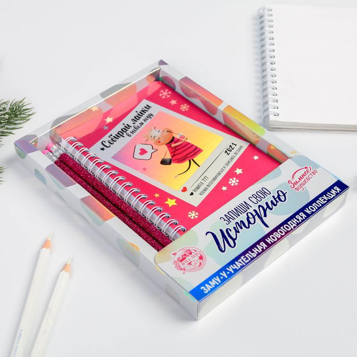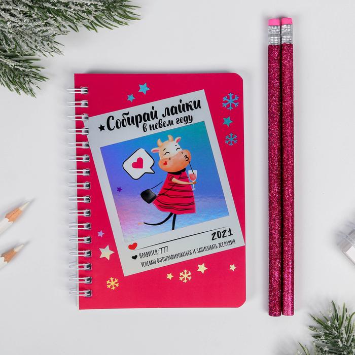 Набор «Собирай лайки», блокнот голография, 40 л, 2 карандаша