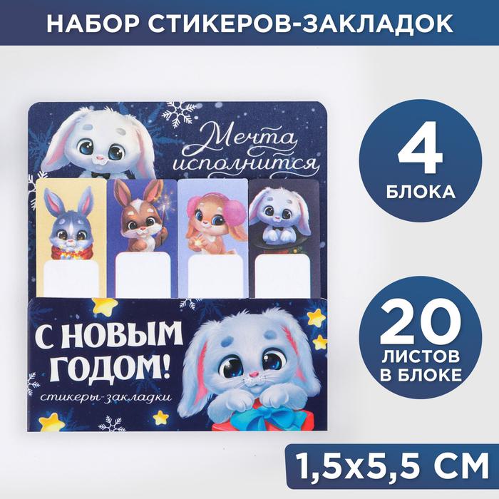 Набор стикеров-закладок, 4 шт, 20 л “Мечта исполнится